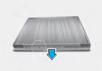 Install a new cabin air filter in the correct direction with the arrow symbol (↓) facing downwards, otherwise, it may be noisy and the effectiveness of the filter may be reduced.