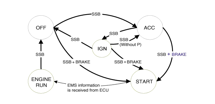 The one of distinction with Mechanical-Ignition-Switch based system is that the BES system allows specific transition from [OFF] to [START] without going through [ACC] and [IGN] states.