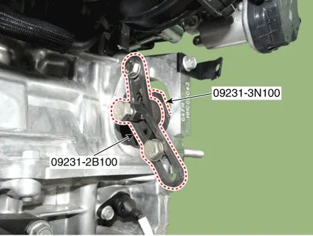 | Fix the ring gears using the SST(09231-2B100,09231-3N100) after removing thestarter. Then remove the crankshaft damperpulley.
