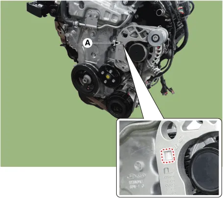 | 1. | Install the wrench to the drive belt tensioner repair hole (A) and turn it clockwise.