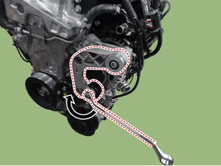 | 2. | Turn the spanner to clockwise after installing it to drive belt tensioner arm boss.