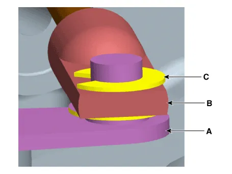| 10. | If the measured voltage value is not within the specified voltage value, adjust the EWGA rodlength. Otherwise, no further procedure is required. | (1) | Loosen the rod end lock nut (B) and remove the C-ring (A). |