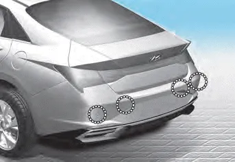 The rear ultrasonic sensors are located inside the rear bumper to detect objects in the rear area. If the sensors are covered with foreign material, such as snow or rain, it may adversely affect sensor performance and Reverse Parking Collision-Avoidance Assist may not operate normally. Always keep the rear bumper clean.