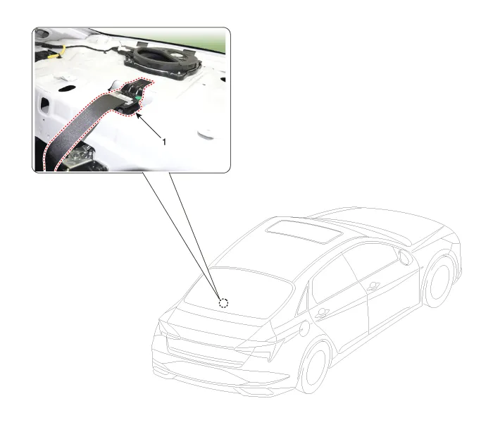 | 1. | Remove the package tray trim. (Refer to Interior Trim - "Package Tray Trim") |