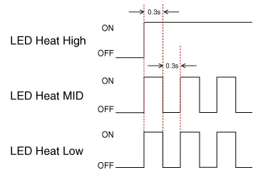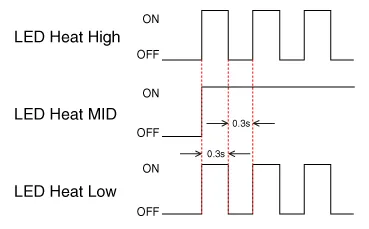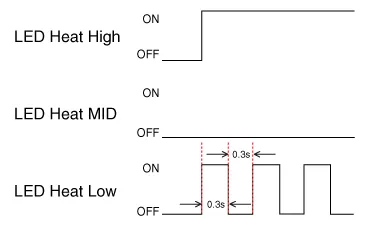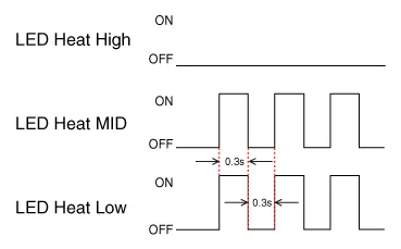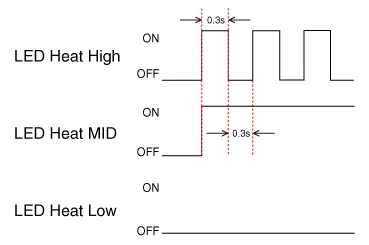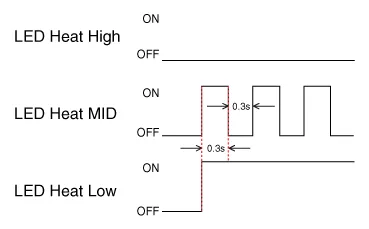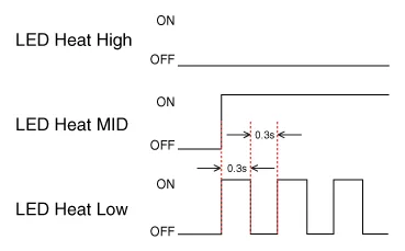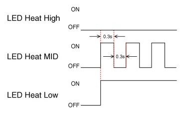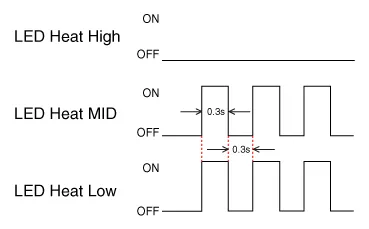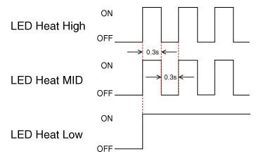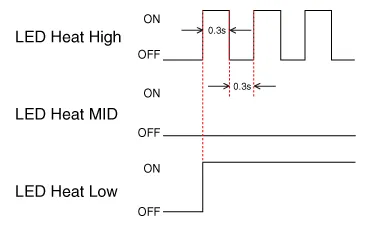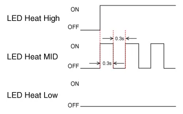 | 4. | When the vehicle enters the diagnostic mode, the three LEDs (Low, Mid, High) in the heating wire section blinks once for 0.5 seconds.