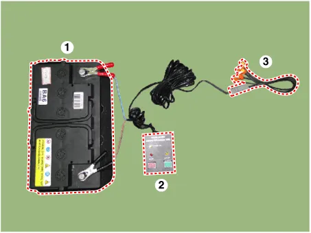| 4. | After connecting the deployment adapter (0957A-AL140, 0957A-AL150, 0957A-AL160) with the deployment tool (0957A-34100A), connect it to the external battery (12V) for deployment. | (2) | Airbag Deploy (0957A-34100A) |