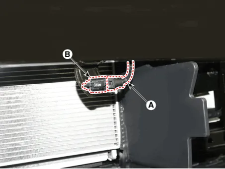 | 3. | Disconnect the connector (A), and then remove the ambient temperature sensor (B).