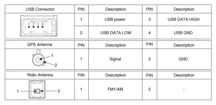 | 2 | Reart left speaker (-) | - | MIC Signal (+) |