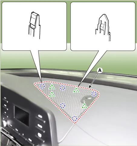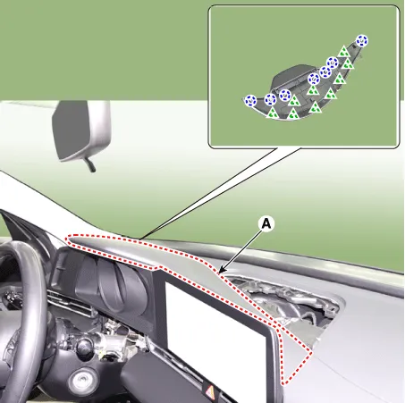 | 4. | Using a flat-tip screwdriver or remover, remove the cluster fascia upper garnish (A).