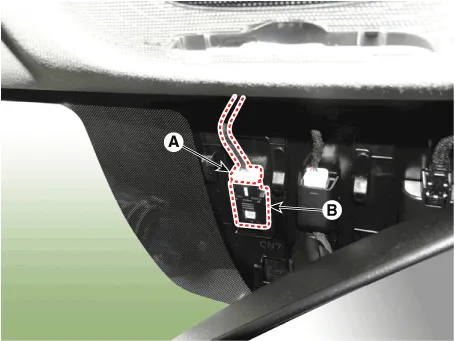 | 4. | Disconnect the connector (A) and then remove the auto defogging sensor (B).