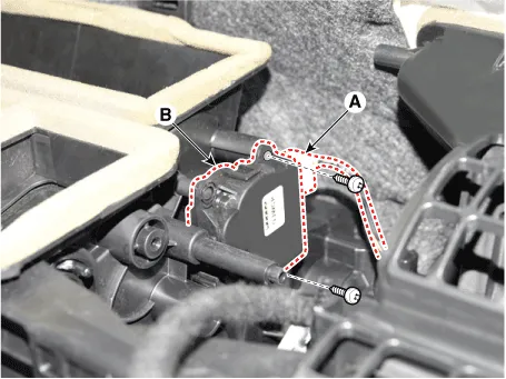 | 3. | Disconnect the connector (A) and then remove the auto defoging actuator (B) after loosening the mounting screws.