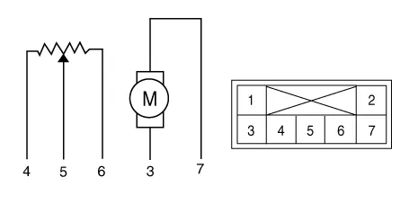 | 3. | Verify that the auto defogging actuator operates to the open position when connecting 12V to terminal 3 and grounding terminal 7. Verify that the auto defogging actuator operates to the close position when connected in reverse.