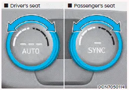 1. Driver’s temperature control knob 2. Passenger’s temperature control knob 3. AUTO (automatic control) button 4. SYNC button 5. OFF button 6.