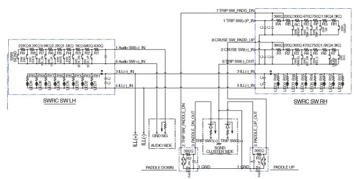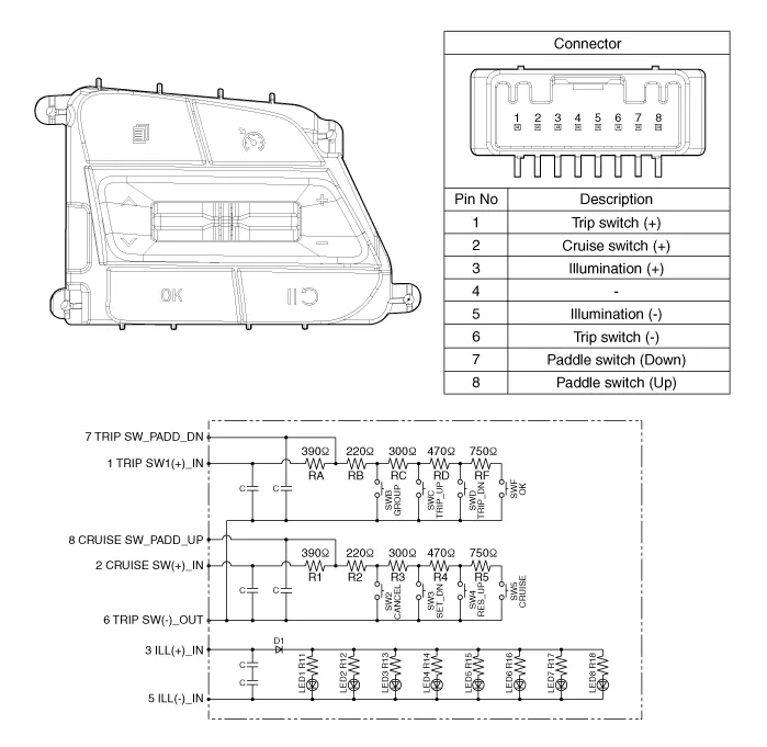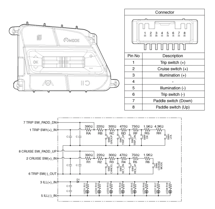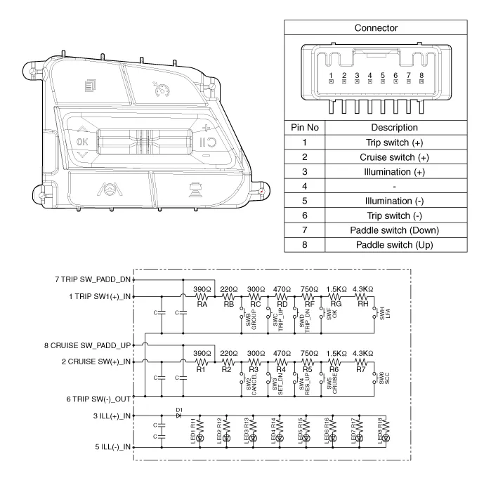 | 1. Left Remote Control Switch (Audio + Bluetooth) | 2. Right Remote Control Switch (Cruise + Trip) |