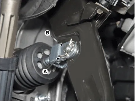 | 5. | Remove the snap pin (A) and the clevis pin (B).