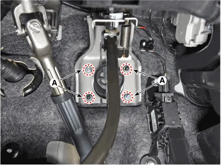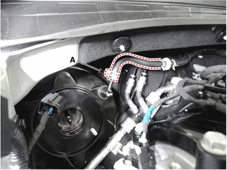 | 5. | Remove the fixing clip and the vacuum hose (A) from the brake booster.