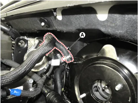 | 5. | Disconnect the heater hose quick connector (A) from the heater pipe.