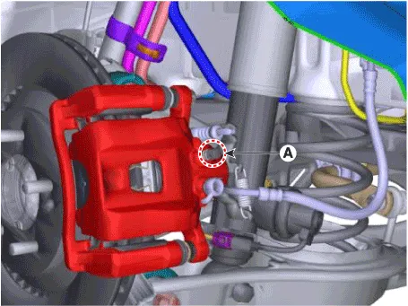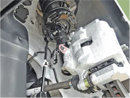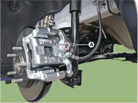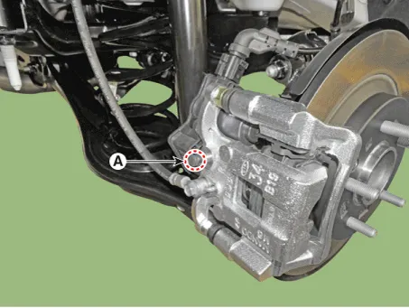| 4. | Loosen the bleed screw (A) and depress the brake pedal repeatedly several times until the brake fluid reaches the caliper cylinder. [Front]
