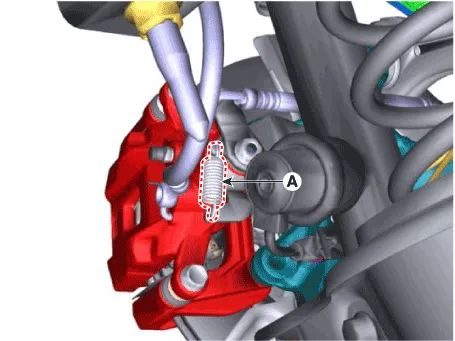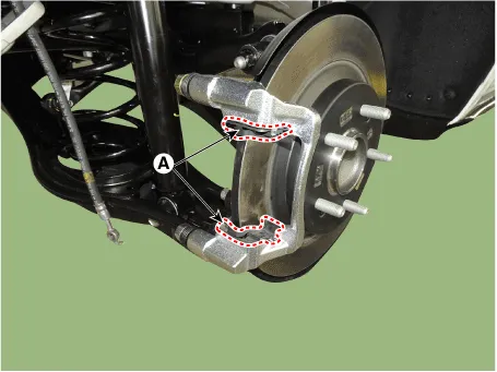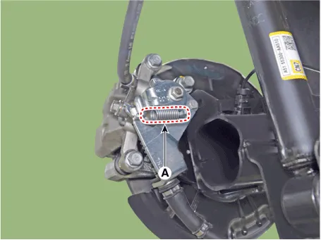 | 8. | Install the caliper body (A) then tighten the guide rod bolt.