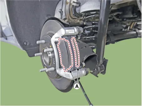 | 6. | Remove the caliper body (A) after loosening the guide rod bolts.