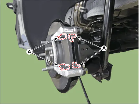 | 10. | Install the caliper body (A) then tighten the guide rod bolt.