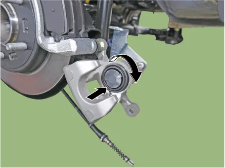 | 1. | Before removing the rear caliper, perform "Brake Pad Replacement Mode" using the diagnostic tool.