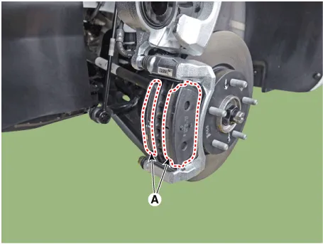 | 9. | Replace the brake pad (A) with a new one.
