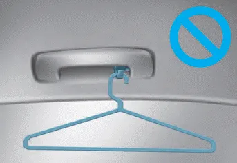 Do not hang other objects such as hangers or hard objects except clothes. Also, do not put heavy, sharp or breakable objects in the clothes pockets. In an accident or when the curtain air bag is inflated, it may cause vehicle damage or personal injury.