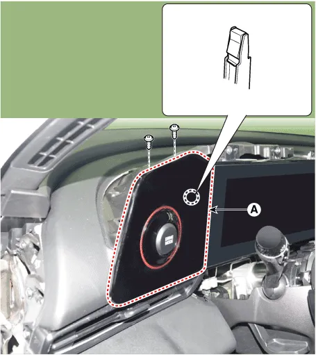 | 4. | Loosen the mounting screw, remove the cluster fascia side panel (A). [4.2" TFT LCD]