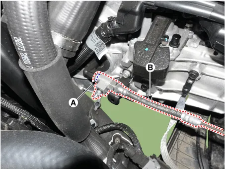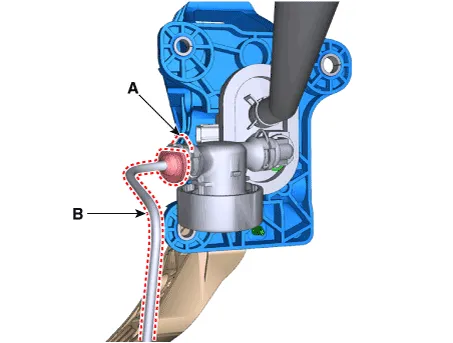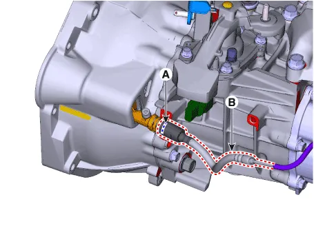 | 5. | Remove the snap pin (A) and then separate the clutch hose & tube (B). [Gasoline 1.6 MPI]