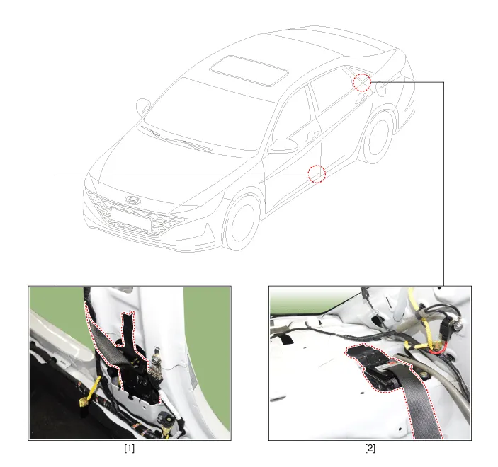 | 1. Front seat Belt Pretensioner (BPT) | 2. Rear seat Belt Pretensioner (BPT) |