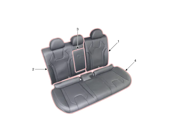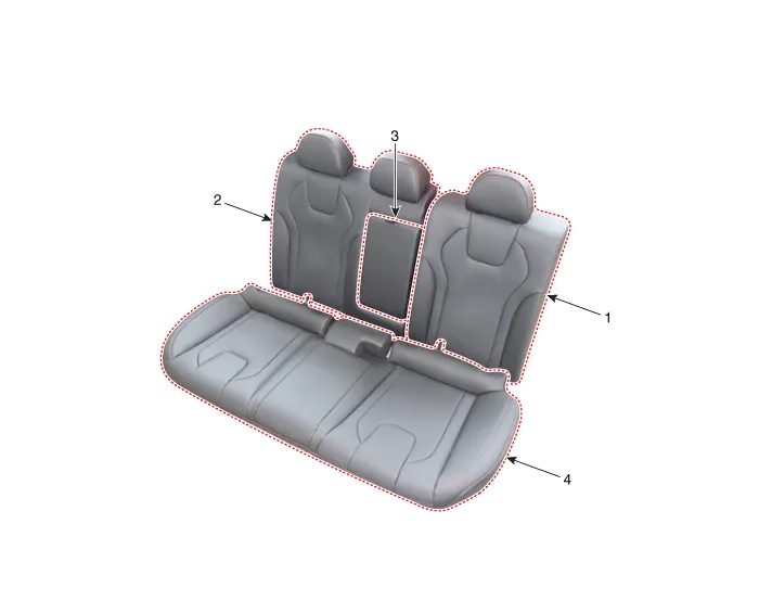 | 1. Rear seat back assembly [LH] 2. Rear seat back assembly [RH] | 3. Rear seat back armrest 4. Rear seat cushion assembly |