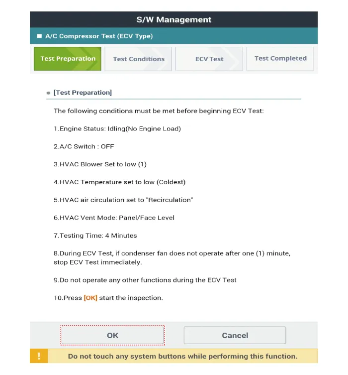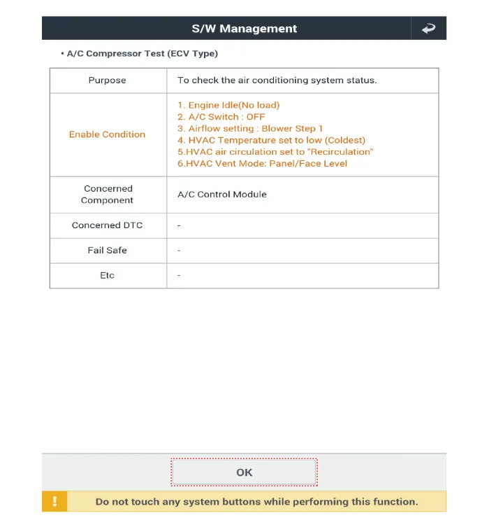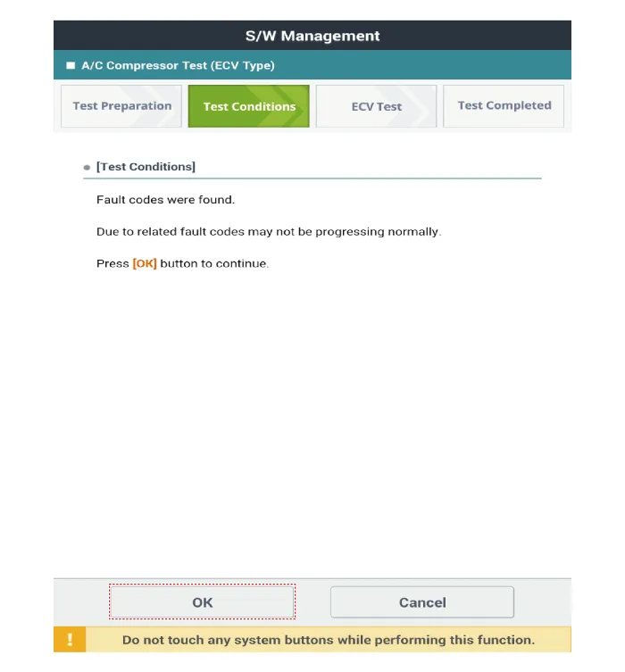 | 3. | Check if other DTC codes are found before inspect ECV compressor. If so, solve that problems first. If not, press 'OK' button to continue.