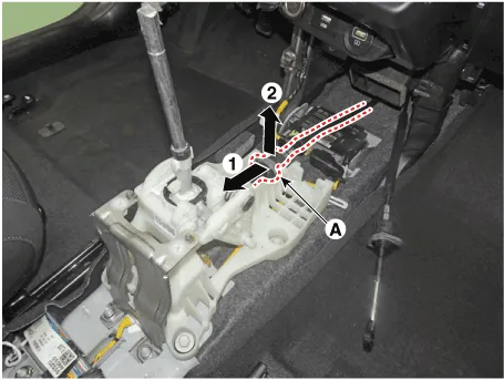 | 8. | Loosen the bolts and then separate the shift lever (A).