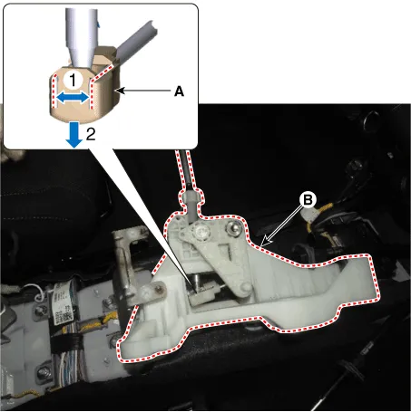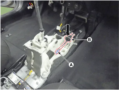 | 6. | Remove the snap pin (A) and then separate the select cable socket (B).