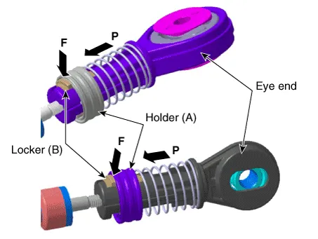 | 6. | Move the locker (B) in the direction of "F" with pulling the holder (A) in the direction of "P".