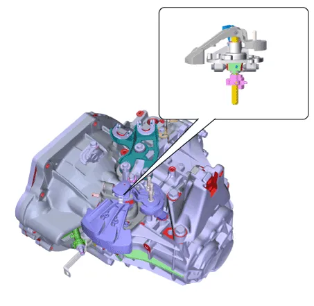 Components and components location Components1. Shift lever knob & boots2. Shift lever assembly3. Select cable4. Shift cable5. Retainer Repair procedures Removal1.