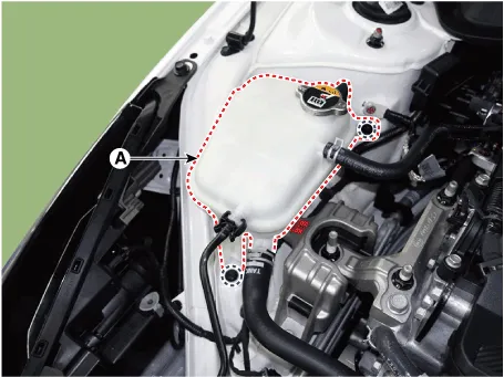 | 2. | Disconnect the degassing hose (A) and coolant reservoir tank hose (B).