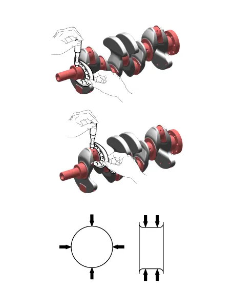 | If the plasticgauge shows that the clearance is still incorrect, try the next larger or smaller bearing (the color listed above or below that one), and check clearance again. |