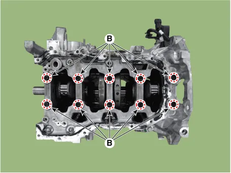 Cylinder Block Crankshaft Journal Bore Mark Location Letters have been stamped on the side surface of the block as a mark for the size of each of the 5 main journal bores. Use them, and the numbers or letters stamped on the crank (marks for main journal size), to choose the correct bearings.