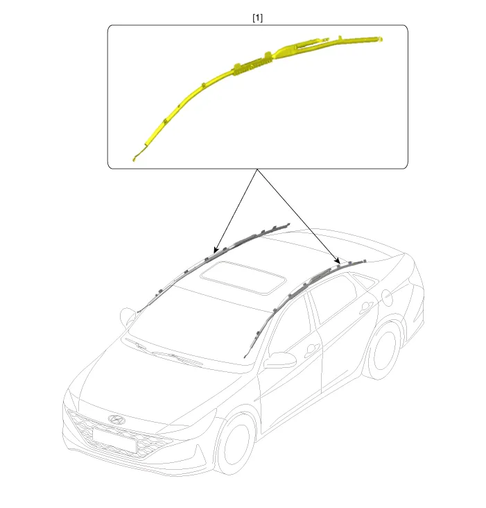 | 2. | Remove the roof trim assembly. (Refer to Body (Interior and Exterior) - "Roof Trim Assembly") |