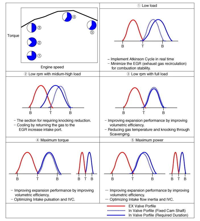 | Optimum Valve Timing by Engine Load |