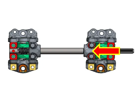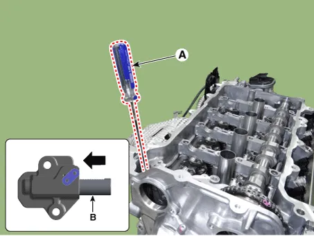 6. Push the control shaft bearing cap as close as possible in the direction of the arrow.