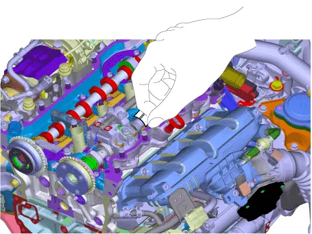 3. Provisionally tighten the CVVD assembly mounting bolts (M8) in sequence shown below. Tightening torque : 9.8 - 11.8 N.m (1.0 - 1.2 kgf.m, 7.2 - 8.7 lb-ft) |