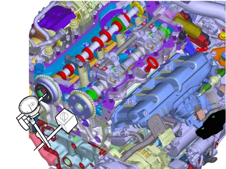 If CVVD fixing jig is available, be sure to work by using it. When Using the CVVD fixture 1. When installing the CVVD assembly mounting bolts (M6), tighten sequence shown. Tightening torque : 1ST 4.9 - 6.9 N.m (0.5 - 0.7 kgf.m, 3.6 - 5.1 lb-ft) 2nd 9.8 - 11.8 N.m (1.0 - 1.2 kgf.m, 7.2 - 8.7 lb-ft) |