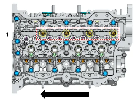 3. Tighten the CVVD assembly mounting bolts (M8) in sequence shown below. Tightening torque : 18.6 - 22.6 N.m (1.9 - 2.3 kgf.m, 13.7 - 16.6 lb-ft) |