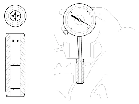 8. Measure the clearance between the control shaft bearing cap and the end of control shaft using a clearance gauge. Clearance : 0.0 - 0.05 mm (0.0 - 0.002 in.) |