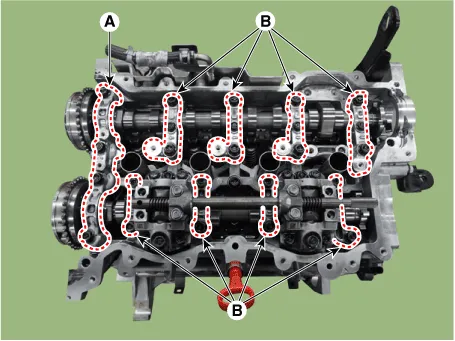 6. Tighten the CVVD assembly mounting bolts (M8) in sequence shown below. Tightening torque : 18.6 - 22.6 N.m (1.9 - 2.3 kgf.m, 13.7 - 16.6 lb-ft) |