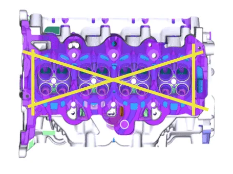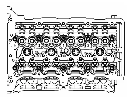2. Provisionally tighten the CVVD assembly mounting bolts (M8) in sequence shown below. Tightening torque : 9.8 - 11.8 N.m (1.0 - 1.2 kgf.m, 7.2 - 8.7 lb-ft) |