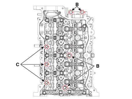 5. Provisionally tighten the CVVD assembly mounting bolts (M6) in sequence shown below. Tightening torque : 4.9 - 6.9 N.m (0.5 - 0.7 kgf.m, 3.6 - 5.1 lb-ft) |